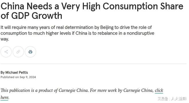 卡耐基基金会资深研究员迈克尔·佩蒂斯呼吁:中国需要大幅提高消费率水平。卡内基中国报告截图